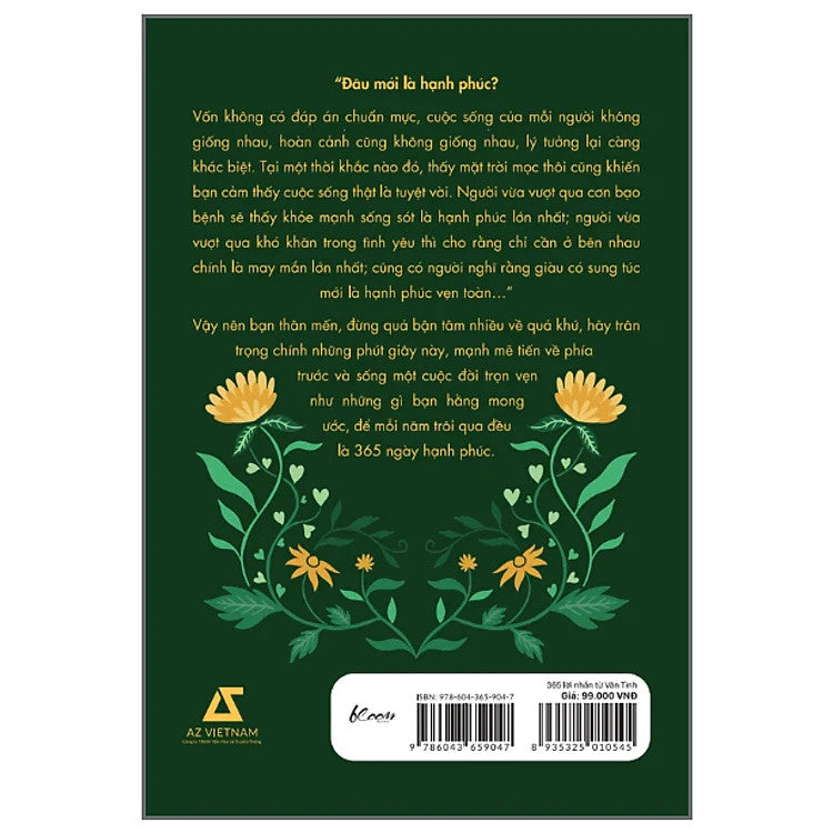 365 lời nhắn từ Vãn Tình (Chúc các bạn hạnh phúc như ý) là cuốn sách chứa đựng những tâm tình, sẻ chia ngắn gọn nhưng thực tế và sâu sắc của tác giả, với mong muốn giúp bạn luôn mạnh mẽ, tự tin và độc lập để có thể sống một cuộc đời trọn vẹn yêu thương.