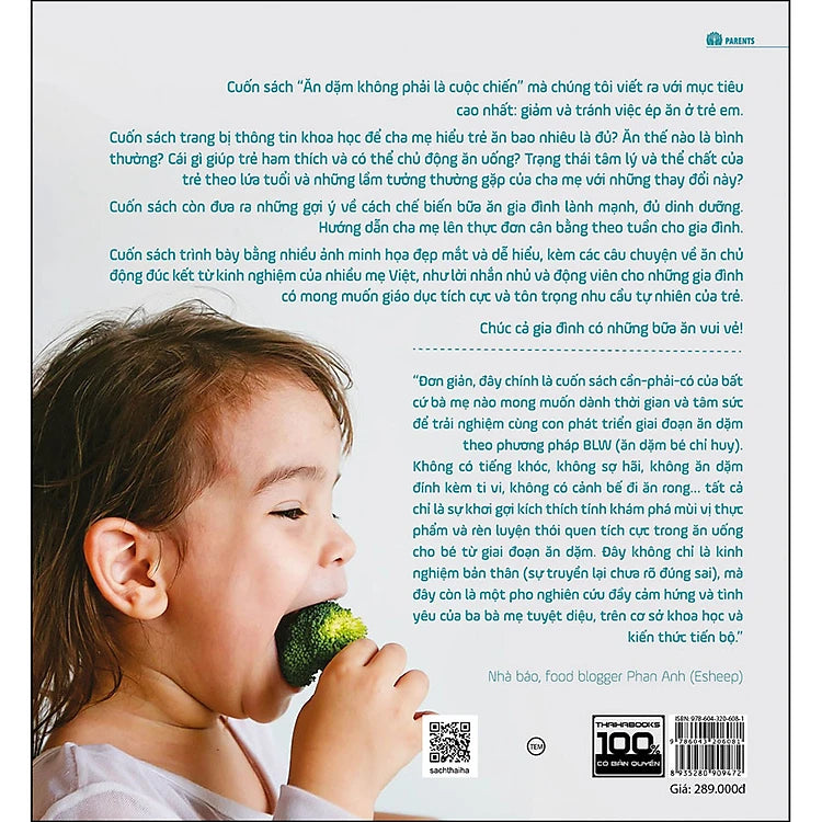 - Cuốn sách còn là tổng hợp những lời tâm sự của nhiều ông bố, bà mẹ trên khắp mọi miền đất nước Việt Nam đã áp dụng cách cho bé ăn uống chủ động và tích cực: những kinh nghiệm áp dụng và biến hoá theo từng gia đình, những khó khăn và thành công của quá trình kiên trì và tôn trọng nhu cầu của trẻ.