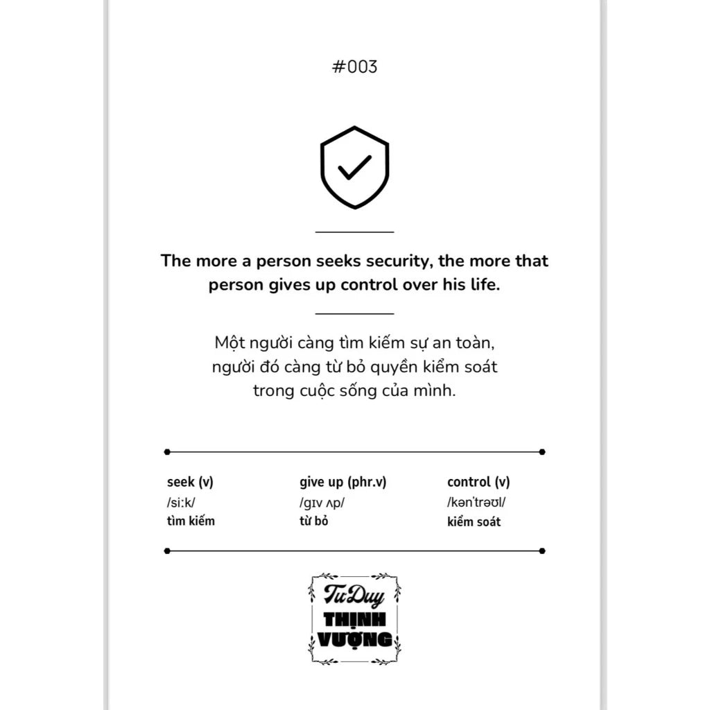 Với nội dung song ngữ Anh – Việt, bạn không chỉ học tiếng Anh qua những câu trích dẫn dễ hiểu và thiết thực mà còn được thực hành mỗi ngày. Đây là phương pháp học tiếng Anh tự nhiên, nhẹ nhàng, giúp bạn dễ dàng mở rộng vốn từ vựng, cấu trúc câu mà không cảm thấy áp lực. Tiếng Anh không chỉ là ngôn ngữ toàn cầu, mà còn là chìa khóa mở ra nhiều cơ hội nghề nghiệp và tri thức.