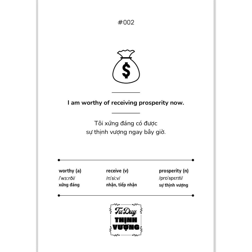 Trong cuộc sống hiện đại, chúng ta không ngừng tìm kiếm sự thịnh vượng – một trạng thái của hạnh phúc, sức khỏe và ổn định tài chính. Để đạt được điều này, điều quan trọng không chỉ nằm ở kiến thức, mà còn ở sự phát triển tinh thần và khả năng thích ứng. Sách Trích Dẫn Song Ngữ Anh – Việt "Tư Duy Thịnh Vượng" chính là người bạn đồng hành hoàn hảo trên hành trình này, giúp bạn vừa nâng cao khả năng tiếng Anh, vừa chữa lành tâm hồn.
