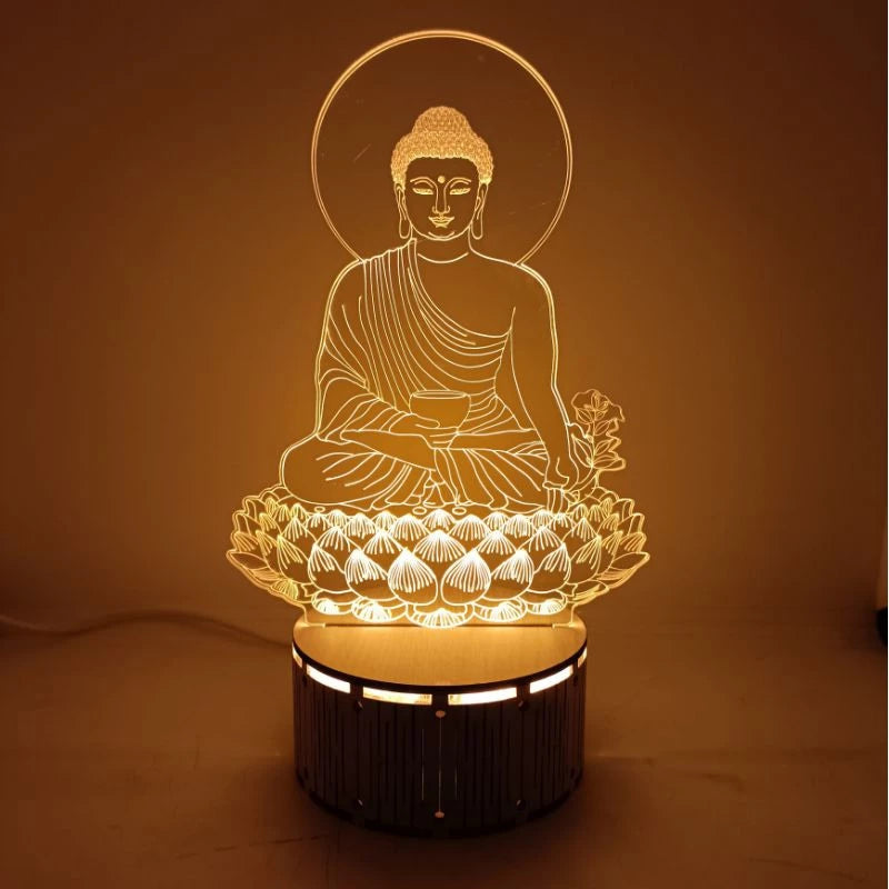 Sản phẩm: BỘ ĐÈN LED HÌNH PHẬT ĐẾ GỖ