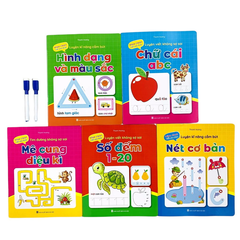 Bộ vở viết xóa wipe clean được cán màng bóng đặc biệt giúp trẻ có thể viết và xóa được khi dùng bút dạ bảng trắng, như vậy bé có thể dùng được nhiều lần giúp bố mẹ tiết kiệm chi phí hơn.