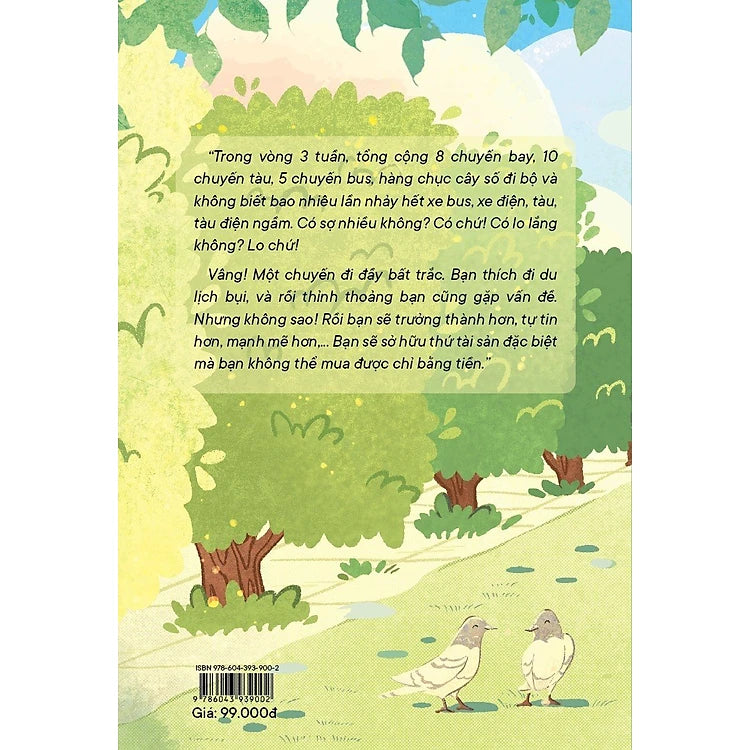 “Trong vòng 3 tuần, tổng cộng 8 chuyến bay, 10 chuyến tàu, 5 chuyến bus, hàng chục cây số đi bộ và không biết bao nhiêu lần nhảy hết xe bus, xe điện, tàu, tàu điện ngầm. Có sợ nhiều không? Có chứ! Có lo lắng không? Lo chứ! Vâng! Một chuyến đi đầy bất trắc. Bạn thích đi du lịch bụi, và rồi thỉnh thoảng bạn cũng gặp vấn đề. Nhưng không sao! Rồi bạn sẽ trưởng thành hơn, tự tin hơn, mạnh mẽ hơn, Bạn sẽ sở hữu thứ tài sản đặc biệt mà bạn không thể mua được chỉ bằng tiền.”
