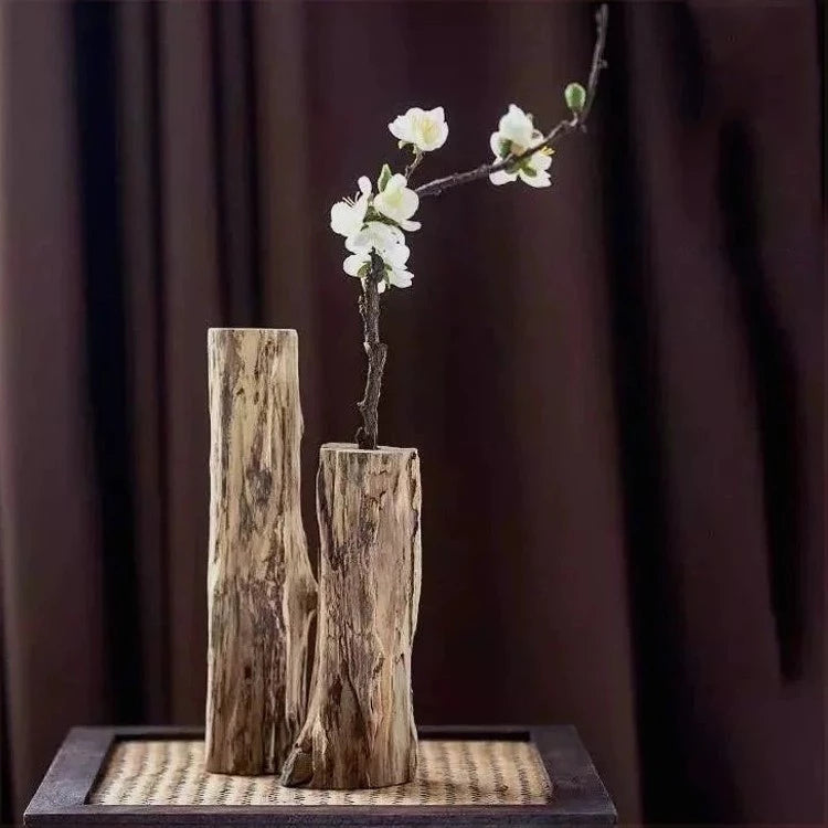 Bình cắm hoa bằng gỗ tự nhiên dùng trang trí decor phòng,quán cà phê, cắm đèn bàn, lọ hoa gỗ lũa