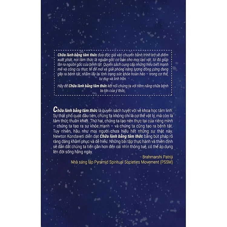 "Chữa Lành Bằng Tâm Thức là quyển sách tuyệt vời về khoa học tâm linh. Sự thật phổ quát đầu tiên, chúng ta không chỉ là cơ thể vật lý, mà còn là tâm thức thuần khiết. Thứ hai, chúng ta tạo nên thực tại của riêng mình - chúng ta tạo ra sự khỏe mạnh - và chúng ta cũng tạo ra bệnh tật. Tuy nhiên, hầu như mọi người chưa hiểu hết những sự thật này. Newton Kondaveti diễn đạt Chữa Lành Bằng Tâm Thức bằng bút pháp rõ ràng đáng khâm phục và dễ hiểu. Những bài tập thực hành và thiền định sẽ dẫn dắt chúng ta tiến gần hơn đến cái nhìn thông tuệ, có thể áp dụng lên đời sống hằng ngày."