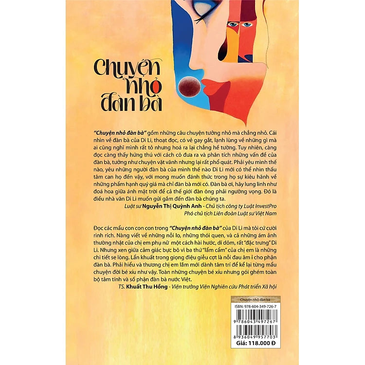 “Chuyện nhỏ đàn bà” gồm những câu chuyện tưởng nhỏ mà chẳng nhỏ. Cái nhìn về đàn bà của Di Li, thoạt đọc, có vẻ gay gắt, lạnh lùng về những gì mà ai cũng nghĩ mình rất tỏ nhưng hoá ra lại chẳng hề tường. Tuy nhiên, càng đọc càng thấy hứng thú với cách cô đưa ra và phân tích những vấn đề của đàn bà, tưởng như chuyện vặt vãnh nhưng lại rất phổ quát. Phải yêu mình thế nào, yêu những người đàn bà của mình thế nào Di Li mới có thể nhìn thấu tâm can họ đến vậy, với mong muốn đánh thức trong họ sự kiêu hãnh về những phẩm hạnh quý giá mà chỉ đàn bà mới có. Đàn bà ơi, hãy lung linh như đoá hoa giữa ánh mặt trời để cả thế giới đàn ông phải ngưỡng vọng. Đó là điều nhà văn Di Li muốn gửi gắm đến đàn bà chúng ta.