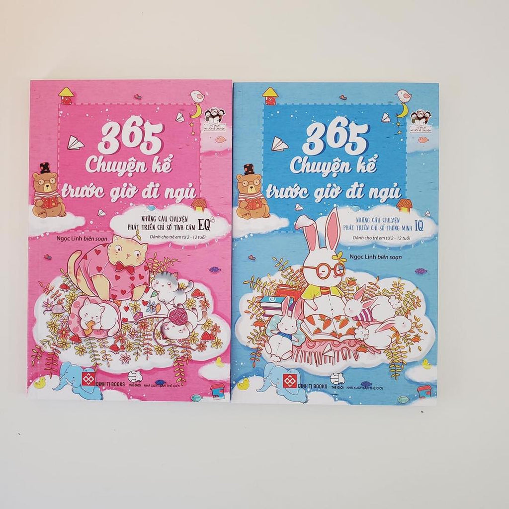 Bộ 365 chuyện kể trước giờ đi ngủ gồm hai tập: Những câu chuyện phát triển chỉ sổ thông minh IQ và Những câu chuyện phát triển chỉ số tình cảm EQ.