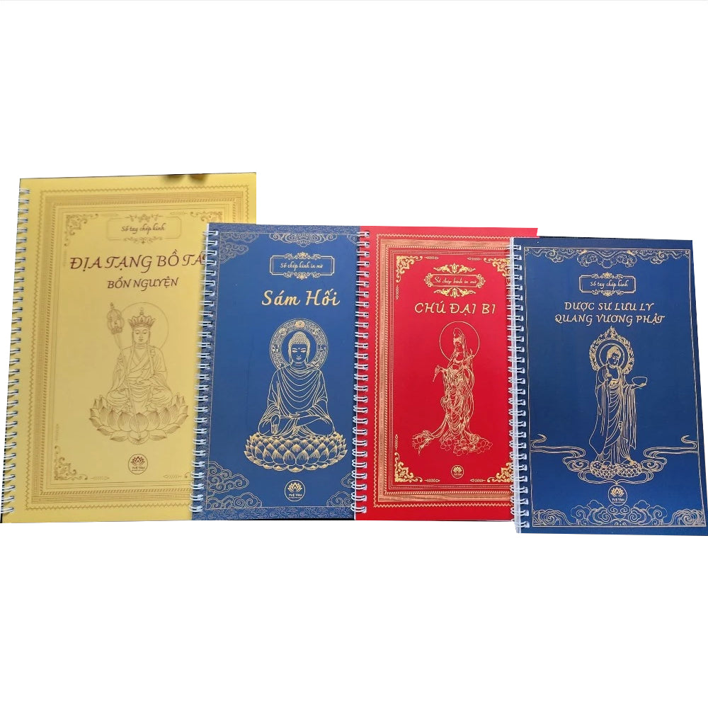 Combo 4 Cuốn Vở Chép Kinh In Mờ gồm Địa Tạng, Chú Đại Bi, Sám Hối, Dược Sư - Tuệ Tâm. Tiệm có tặng thêm cây viết.