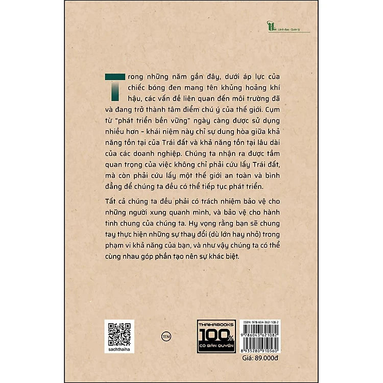 Cuốn sách này là cánh cửa dẫn vào một đề tài đang biến động rất nhanh, vì thế bây giờ nó đã được cập nhật kỹ lưỡng bằng những thông tin mới. Nhiệm vụ của cuốn sách là trang bị kiến thức ban đầu cho độc giả về tất cả những khía cạnh quan trọng liên quan đến việc thực hành kinh doanh bền vững và có đạo đức, nhưng nó sẽ được trình bày hết sức cô đọng và súc tích.