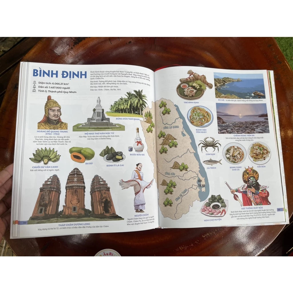 Cuốn sách này tôi vừa lật ra đã thích. Sách phát hành hôm nay. Đó là trang sách về các tỉnh thành quê hương ta và những gì yêu dấu, đặc sản vùng miền. Tự tôi lật trang Ninh Bình ra coi thử.