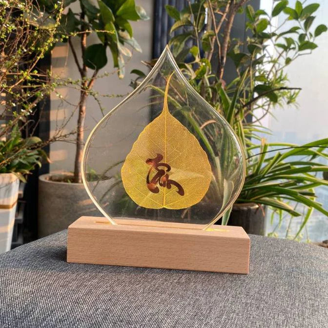 Chính giữa của lá là chữ TÂM, AN, PHÚC, LỘC được gia công rất tinh xảo tỉ mỉ, đẹp mắt càng tăng thêm ý nghĩa của sản phẩm.