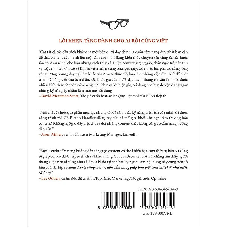 Vậy thì còn chần chừ gì mà không tìm cho mình một cuốn sách Everybody Writes - Ai rồi cũng viết - Cuốn cẩm nang giúp bạn viết content “chất như nước cất” có thể đáp ứng được những lo lắng trên. Tác giả Ann Handley phải viết cuốn sách này vì không thể tìm được những điều cô ấy cần – vừa là cẩm nang viết lách, vừa trình bày về những quy tắc đạo đức và thượng võ trong giới content marketing, vừa là một người bạn toàn diện và đáng tin cậy dành cho bất cứ ai đang sáng tạo hoặc điều hướng content thay mặt cho cả thương hiệu.