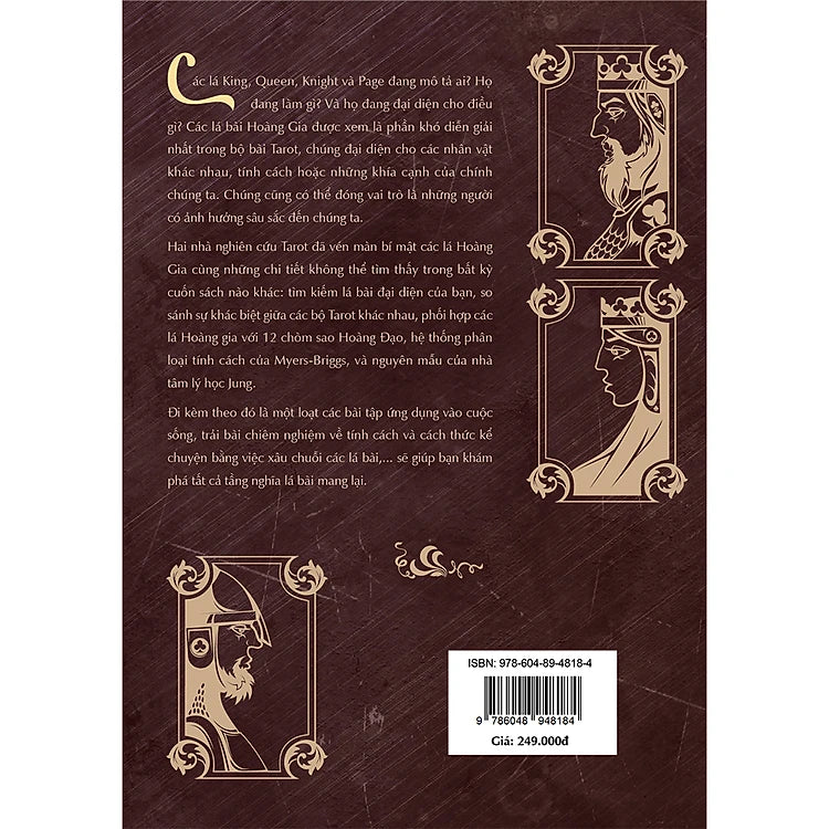 Hai học giả – nhà nghiên cứu Tarot nổi tiếng thế giới: Mary K. Greer và Tom Little đã cùng nhau vén lên bức màn mơ hồ của 16 lá bài Hoàng gia và đúc kết lại đầy đủ chi tiết trong quyển sách Understanding the Tarot Court (tựa tiếng Việt: Giải Mã Bộ Hoàng Gia Tarot) – những kiến thức mà bạn sẽ không thể tìm thấy trong bất kỳ ấn phẩm nào khác. Hãy khai phá lá bài đại diện cho chính thể và lá bài đối nghịch với bạn; so sánh khác biệt giữa các lá bài trong những bộ bài phổ biến; kết hợp các lá bài Hoàng gia với các cung Hoàng đạo, hoặc với các hình mẫu tính cách của Myers-Briggs, Carl Jung; tìm hiểu về các dạng trải bài khai phá nên các vấn đề từ thuở ấu thơ, định hướng sự nghiệp, và khai mở sự sáng tạo trong chính bản thân bạn.