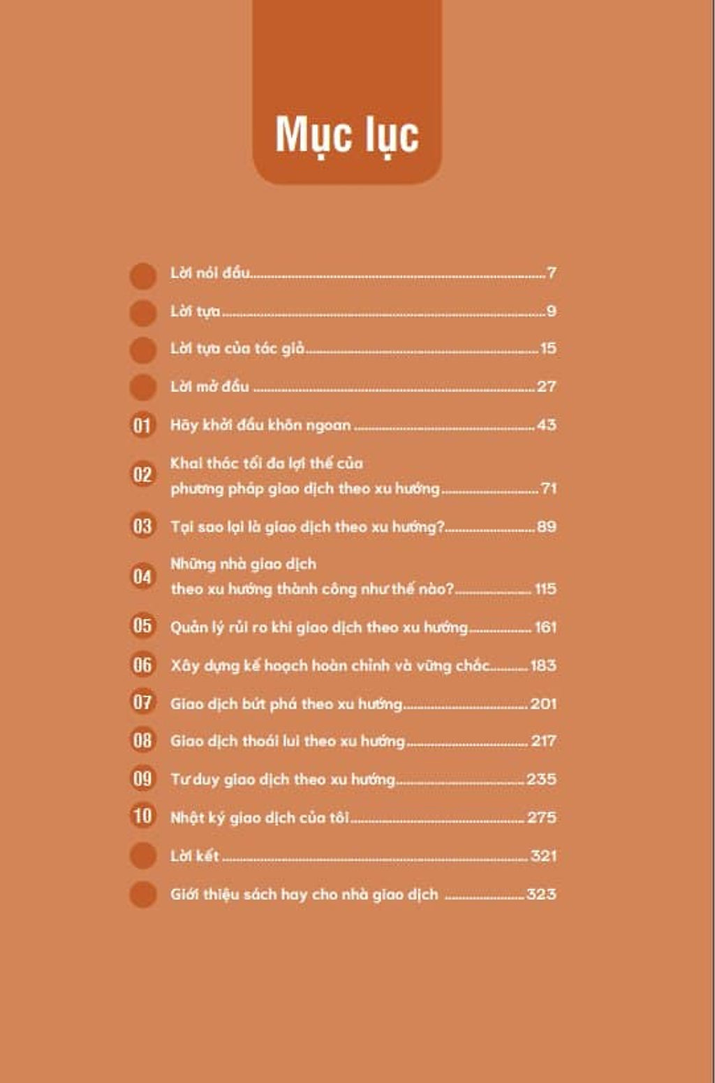 Điều luôn khắc cốt ghi tâm của các nhà giao dịch chuyên nghiệp luôn là “Hãy đi theo xu hướng” hay “Xu hướng là bạn” hoặc “Đừng chống lại xu hướng”, và sách Giao Dịch Theo Xu Hướng Để Kiếm Sống chia sẻ lại tư duy, phương pháp giao dịch thực tế cũng như các giao dịch thực chiến đã thực hiện của tác giả Andrew Abraham trong suốt 18 năm ông đầu tư vào các quỹ giao dịch theo xu hướng cũng như tự mình quản lý vốn và giao dịch theo xu hướng.