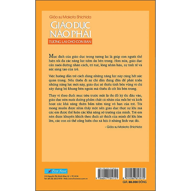Tựa đề của cuốn sách này là "Giáo Dục Não Phải - Tương lai cho con bạn" và tôi nghĩ là không chỉ cho tương lai của con bạn, nó có thể là tương lai của xã hội hay có thể là tương lai của một dân tộc thông minh. Cuốn sách đề cập những vấn đề rất cơ bản, đã được chấp bút bởi Giáo sư Makoto Shichida từ lâu, rất lâu lắm rồi. Nhưng cái cách ông chỉ dạy cho thay đổi nhận thức và thực hành về giáo dục bỗng nhiên trở nên thật cần thiết cho xã hội Việt Nam bây giờ.