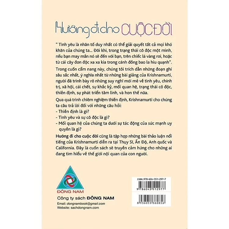 Hướng đi cho cuộc đời cũng là tập hợp những bài thảo luận nổi tiếng của Krishnamurti diễn ra tại Thụy Sĩ, Ấn Độ, Anh quốc và California. Đây là cuốn sách sẽ truyền cảm hứng cho những ai đang tìm hiểu về thế giới nội quan của con người.