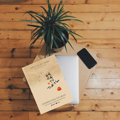 “Khi mới bắt đầu thực tập chánh niệm, quý vị thường có cả ngàn câu hỏi. Nhưng trước khi tìm người khác để xin giải đáp thì hãy ngồi xuống với câu hỏi của mình. Quý vị sẽ ngạc nhiên khi khám phá ra rằng nhờ nhìn sâu và ôm ấp câu hỏi mà quý vị có thể tự trả lời hầu hết các câu hỏi của mình. Chúng ta có thói quen luôn hướng ngoại, nghĩ rằng chúng ta có thể tiếp nhận tuệ giác hay từ bi từ một người khác, từ Bụt, từ lời dạy của Bụt (Pháp) hay từ Tăng thân. Nhưng mà quý vị là Bụt, quý vị là Pháp, quý vị là Tăng.