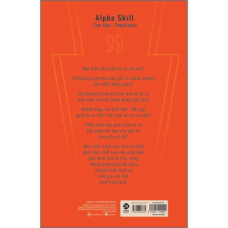 Cuốn sách là một loạt những tình huống thực tế, phân tích bản chất của các cơn giận và những mâu thuẫn trong chính gia đình, nơi làm việc, trong cuộc sống và quan hệ tình cảm mà mọi người đều gặp phải. Cảm xúc, bao gồm cả sự tức giận là quyền tự do của mỗi người. Người khác không thể can thiệp vào, và cũng không thể nhận trách nhiệm về phía mình.“Tôi là tôi. Bạn là bạn”. Nếu chúng ta có thể phân biệt rạch ròi ranh giới giữa bản thân và người khác thì việc chúng ta bị cảm xúc của họ chi phối, hoặc trút giận lên người khác chắc chắn sẽ giảm đáng kể. Qua cuốn sách này, bạn sẽ hiểu được bản chất của cơn giận dưới góc nhìn Tâm lý học, cùng những biện pháp để xoay chuyển tình hình và hóa giải nó một cách hiệu quả.