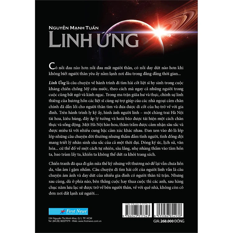 “Linh ứng” là cuốn sách kể câu chuyện có thật về hành trình của gia đình nhà văn Nguyễn Mạnh Tuấn đi tìm hài cốt liệt sĩ Nguyễn Minh Khôi - người anh trai đã hy sinh trong cuộc chiến tranh khốc liệt, với những câu chuyện ly kỳ, bí ẩn đến mức nếu không được kể lại bởi người trong cuộc, hẳn chúng ta sẽ thấy hoài nghi.
