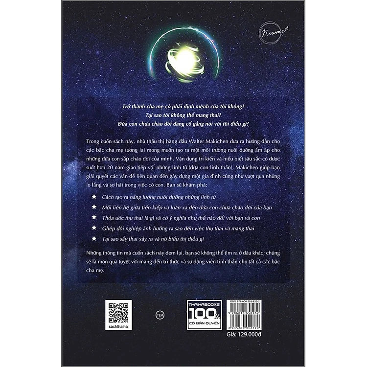 Trong cuốn sách đắc lực và dễ tiếp cận này, nhà thấu thị Walter Makichen hướng dẫn cho các bậc cha mẹ tương lai tạo ra một môi trường ấm áp để nuôi dưỡng cho những đứa trẻ sắp được thụ thai hoặc sắp chào đời của họ. Áp dụng sự khôn ngoan và hiểu biết sâu sắc mà ông đã có được sau hai mươi năm giao tiếp với những “linh tử”, Makichen giúp độc giả giải quyết các vấn đề thường gặp khi lập gia đình, tham gia tích cực vào quá trình tâm linh để tạo ra một đứa trẻ và vượt qua những lo lắng và sợ hãi khi trở thành cha mẹ. Cuốn sách bao gồm nhiều kiến thức tâm linh, từ bảy luân xa thiết yếu liên kết cơ thể, tâm trí và tinh thần, cho đến giải thích lý do phụ nữ mang thai lại có khả năng ngoại cảm. Ngoài ra, tác giả đưa vào cả các bài tập thở và thiền chữa bệnh ở cuối mỗi chương để độc giả có thể trở thành một bậc cha mẹ như ý muốn.