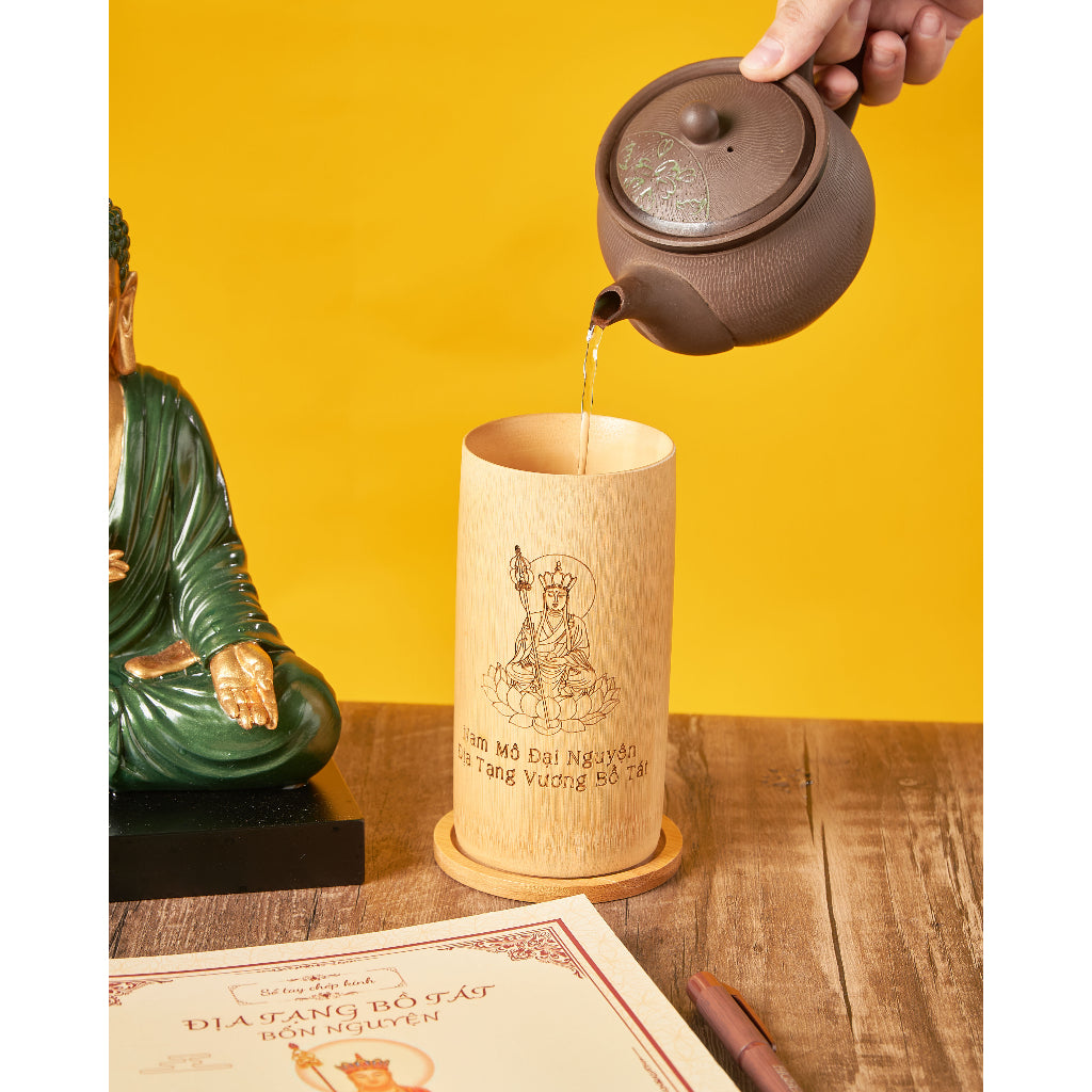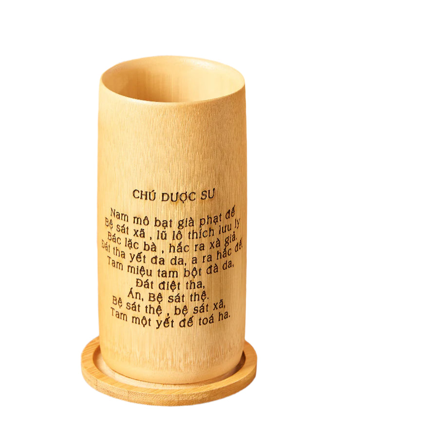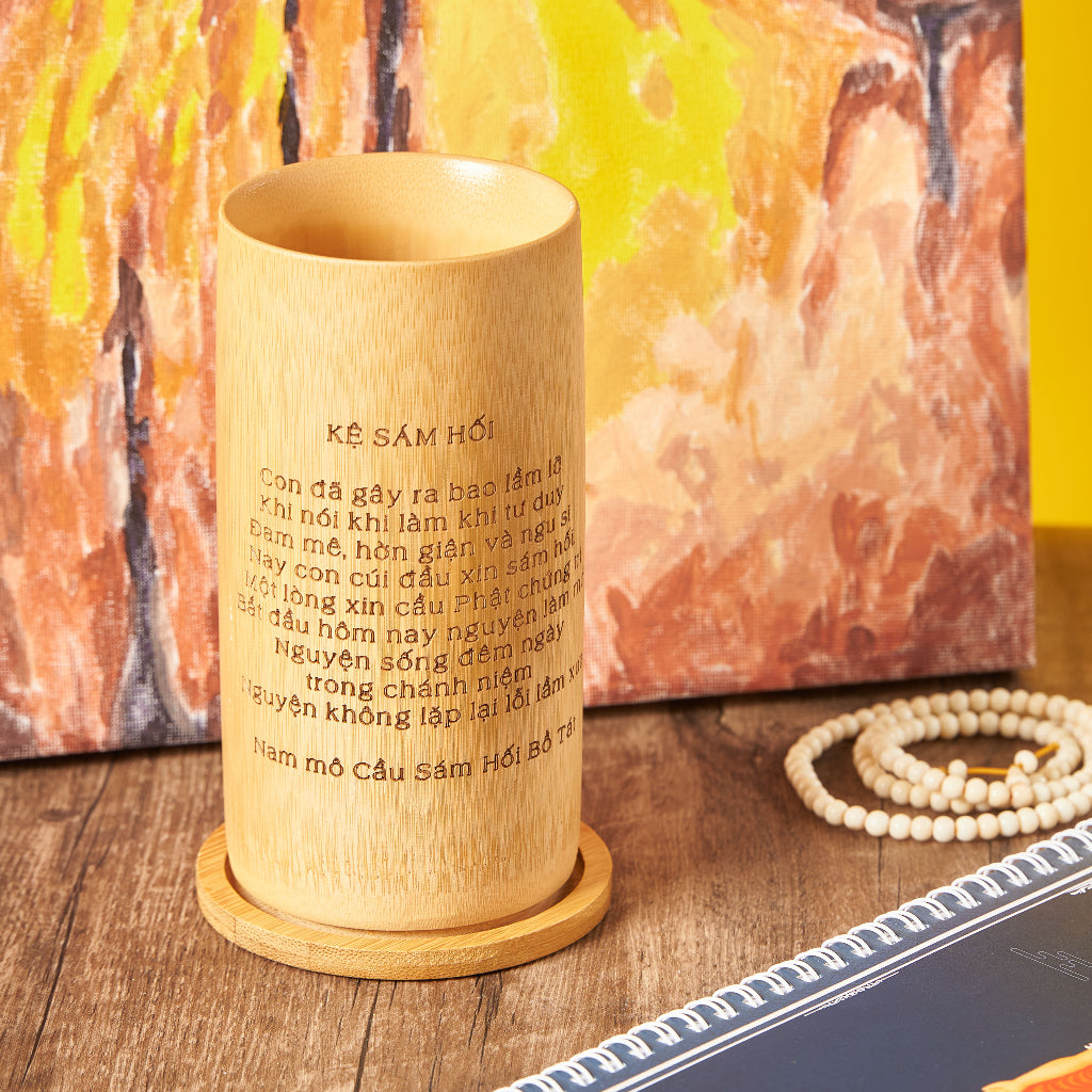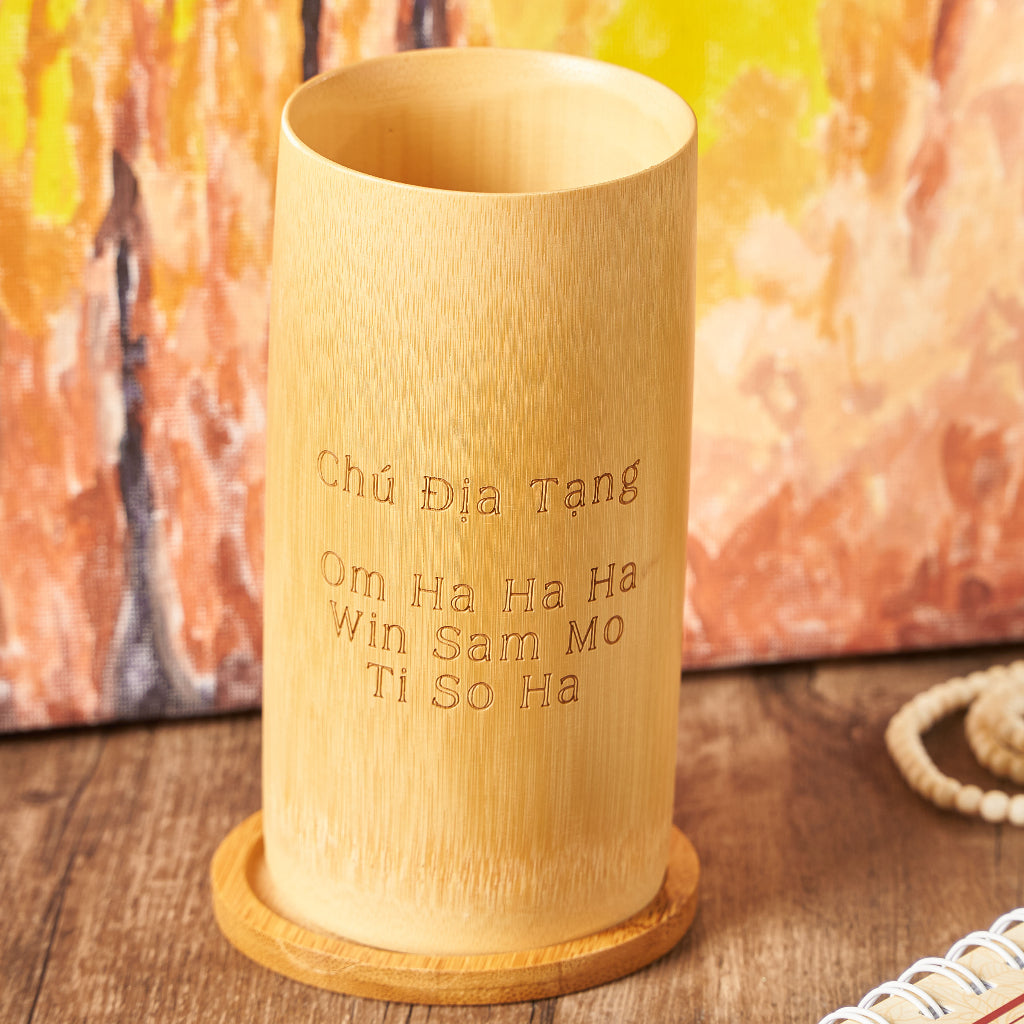 Ly tre- Cốc tre tự nhiên khắc Chú Đại Bi, Chú Dược Sư, Địa Tạng, Sám Hối.