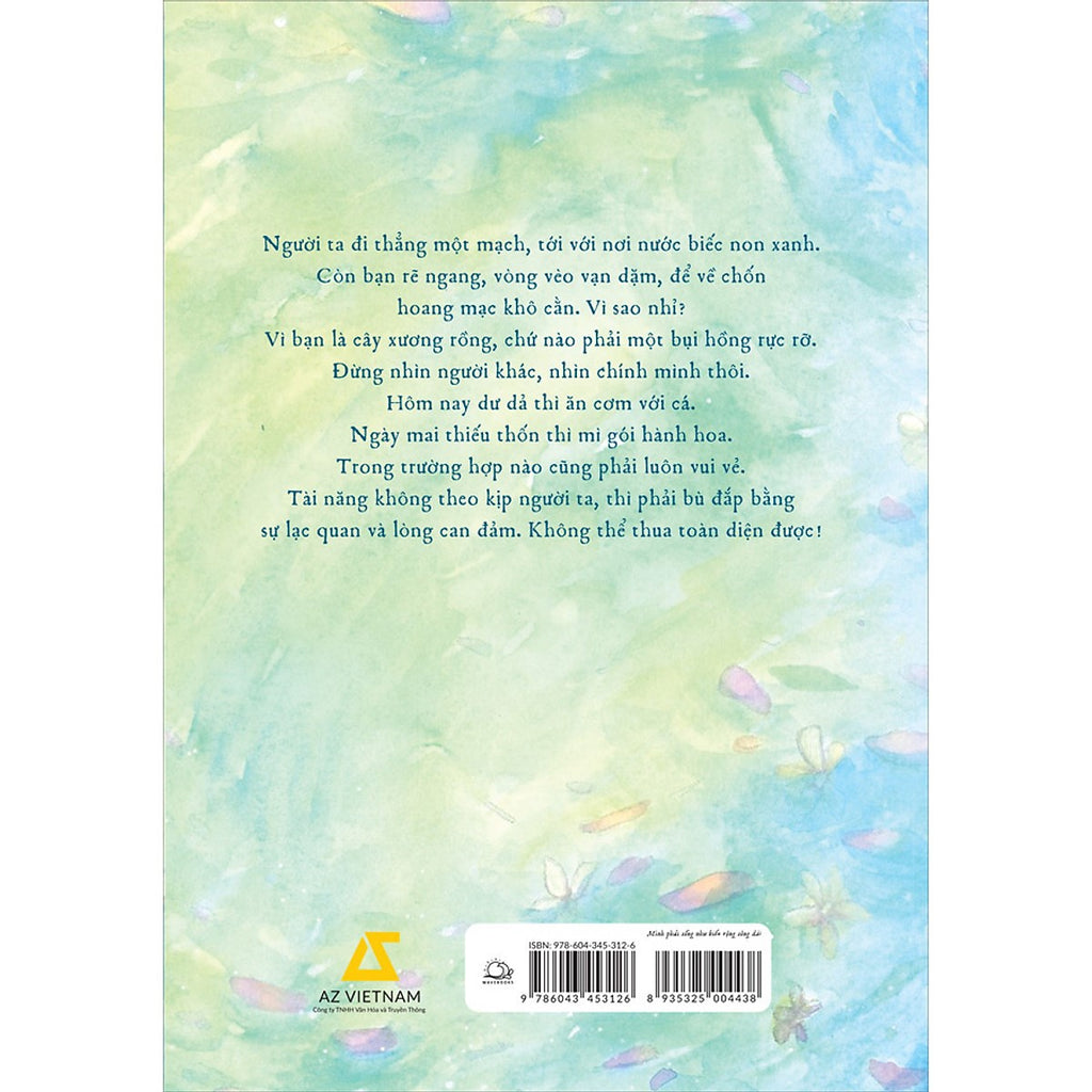 Mỗi người sinh ra là một dòng chảy khác biệt, bạn không phải trở thành ai, bạn chỉ cần là chính mình. Một cá thể không ngừng nỗ lực, can đảm bước đi theo đam mê và tiếng gọi trong tim, dẫu phía trước có gian lao, thử thách thế nào. Và cuộc sống chỉ có ý nghĩa khi chúng ta biết ước mơ, biết “sống như biển rộng sông dài, trôi đi và cuộn trào không ngơi nghỉ”. Và đó cũng chính là thông điệp mang tinh thần tích cực từ cuốn sách gửi tới bạn đọc.
