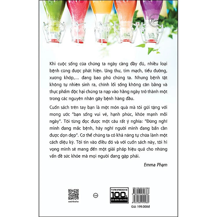 Cuốn sách “Nước ép trị liệu và chế độ ăn theo phương pháp cơ thể tự chữa lành” của tác giả Emma Phạm chính là một món quà, trong đó chứa đựng những nguyên lý giúp bạn và gia đình sống khỏe hơn mỗi ngày.