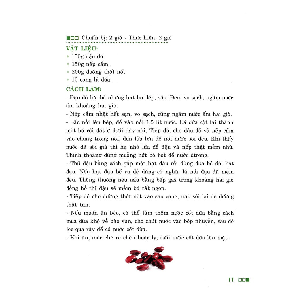 Ẩm thực Nam Bộ vốn được yêu thích bởi sự dân dã, nguyên liệu gần gũi dễ tìm nhưng hương vị thì tuyệt ngon. Cuốn sách hướng dẫn cách chế biến 62 món chè thơm ngon, thanh mát, giải nhiệt trong ngày hè: Thạch đậu đỏ, thanh long, trứng cút, nấm tuyết bí đỏ, sakê lá dứa... Bạn hãy trổ tài vào bếp để chiêu đãi gia đình và những người thân yêu của mình nhé!