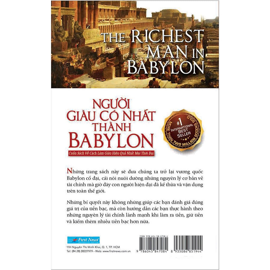 Người Giàu Có Nhất Thành Babylon - cuốn sách của George Samuel Clason mang tới những lời khuyên tài chính thông minh, cách tiết kiệm, buôn bán và làm giàu của người dân cổ xưa thành Babylon. Những kinh nghiệm trong kinh doanh, quản lý tài chính và phương cách làm giàu này vẫn còn giá trị hữu ích đối với giới kinh doanh, buôn bán ngày nay, đặc biệt là các kỹ năng quản lý tiền.