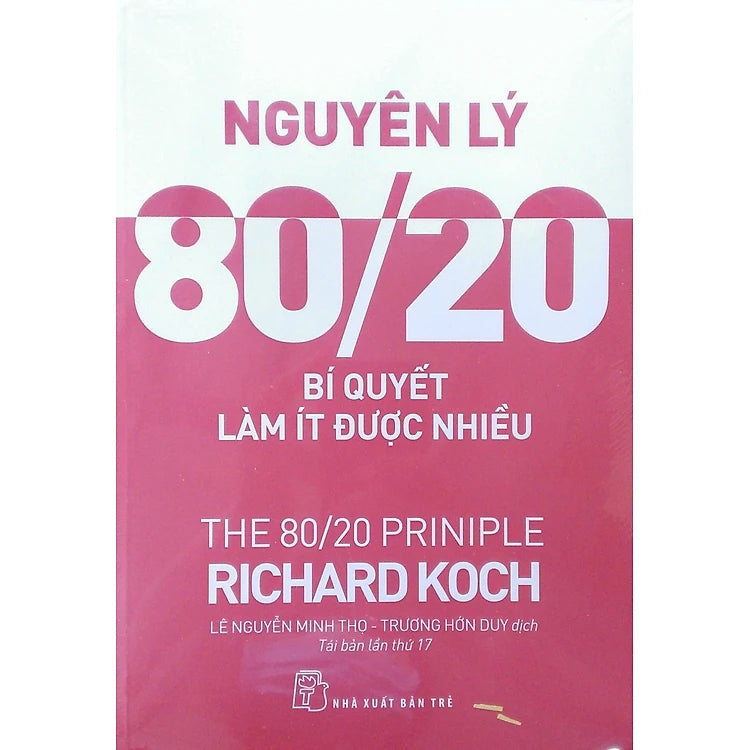 Được trình bày trong một trong những cuốn sách độc đáo, có sức khích gợi, và có tầm lan toả nhất của thập kỷ. Nguyên lý 80/20 chỉ cho bạn cách làm thế nào để có thể nâng cao được hiệu năng lên nhiều hơn nữa với một lượng thật ít công sức, thời gian và nguồn lực hơn nữa, đơn giản chỉ bằng con đường tập trung vào nhóm 20% quan trọng hàng đầu.