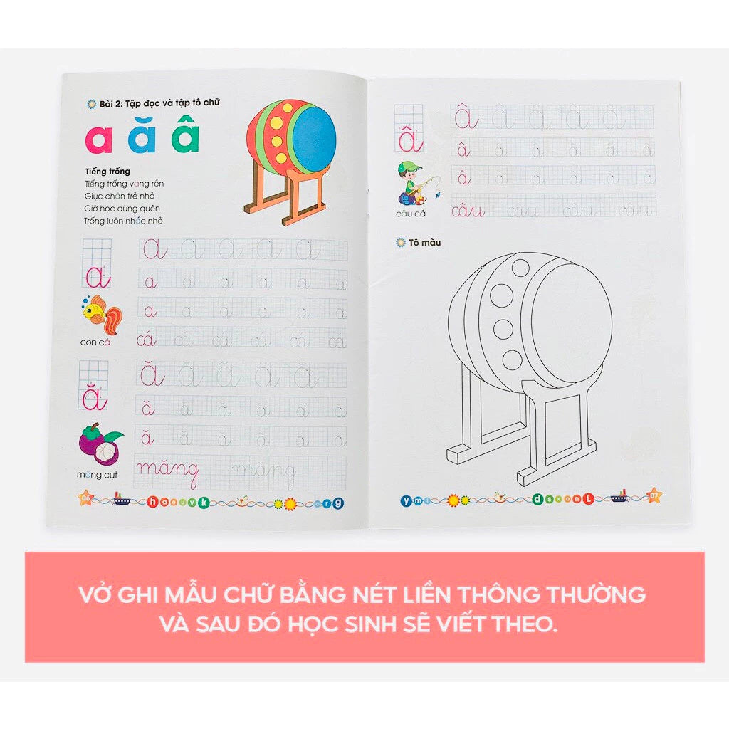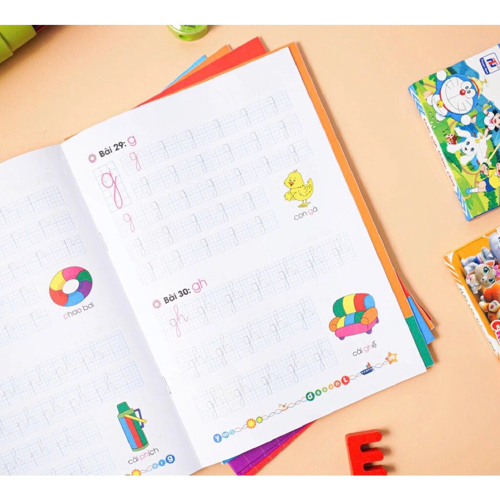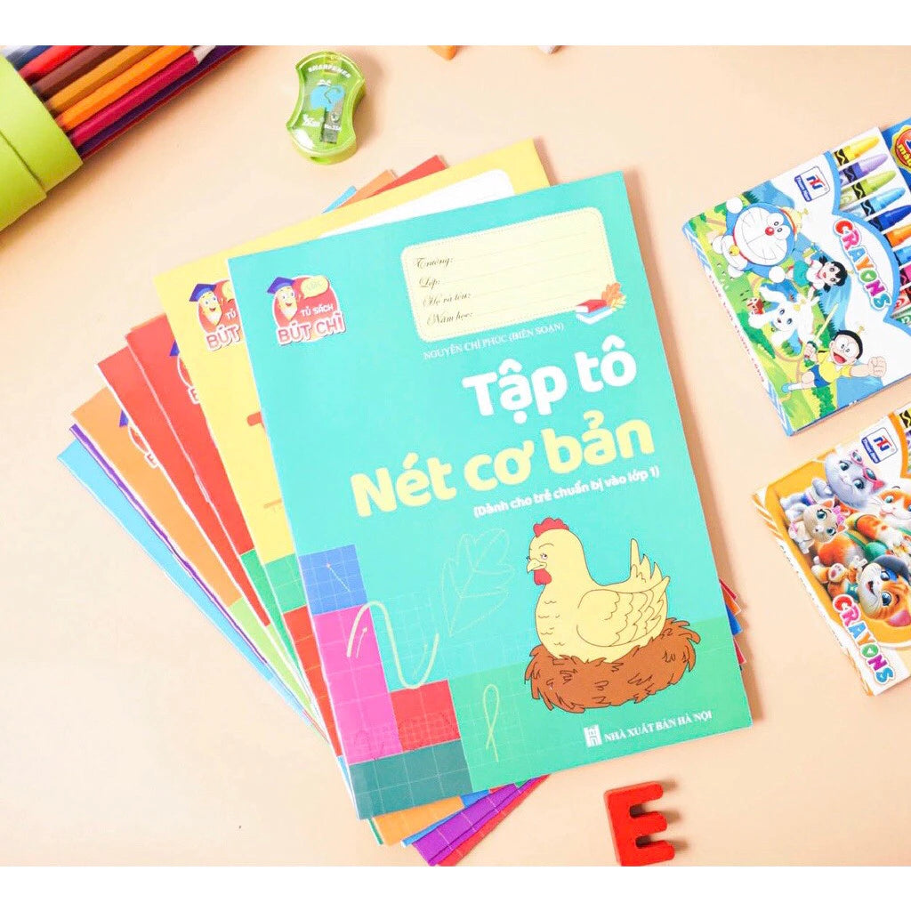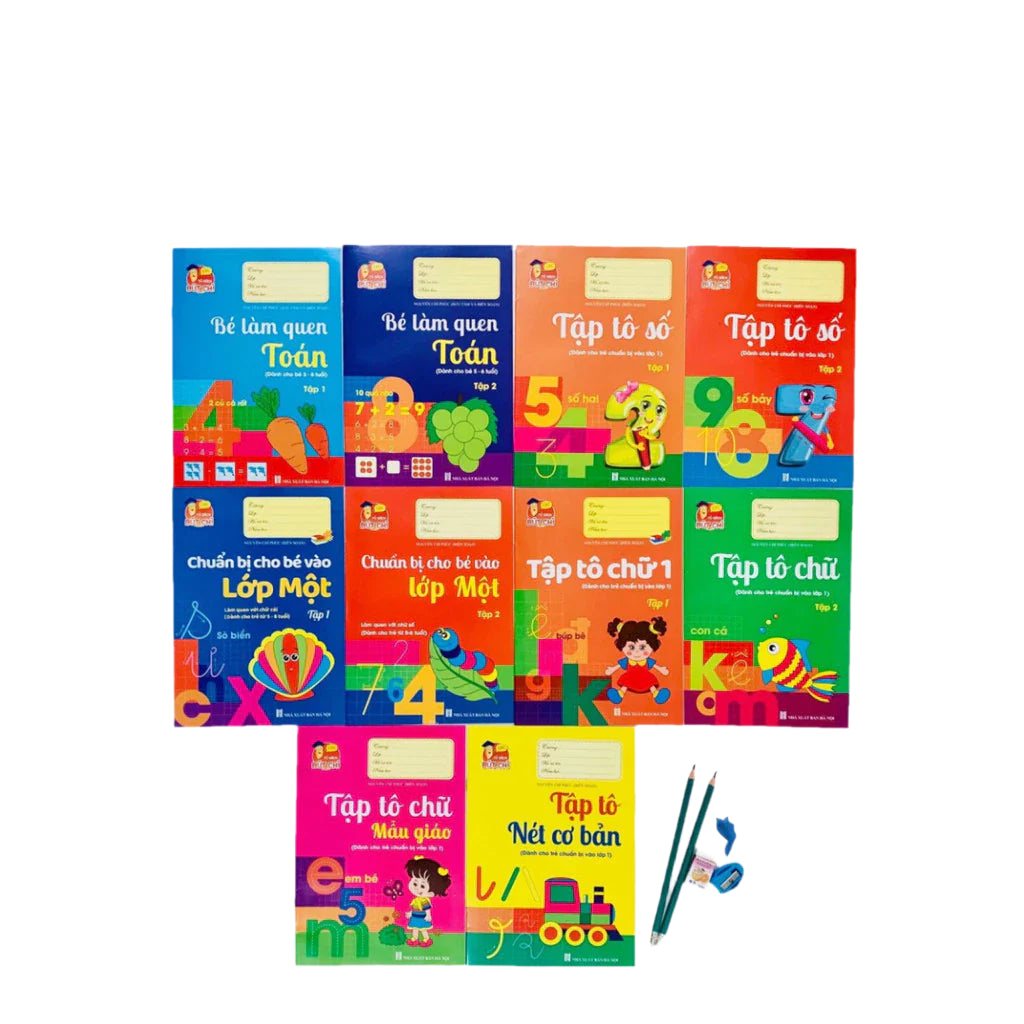 Bộ sách gồm 10 cuốn tô số, tô chữ, tập viết các nét cơ bản, làm quen với toán học trang bị hành trang cho bé vào lớp 1