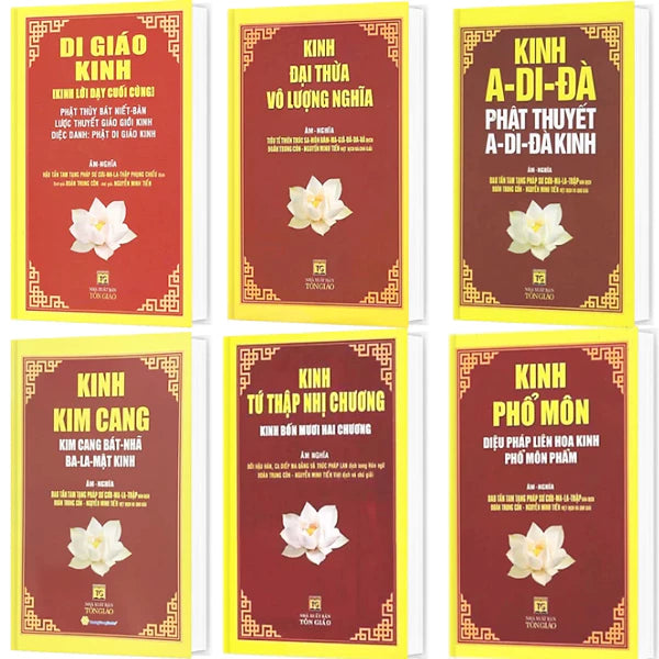 Combo Kinh Tụng Âm Nghĩa gồm 7 quyển: Kinh Dược Sư + Kinh Phổ Môn + Di Giáo Kinh + Kinh A Di Đà Kinh Kim Cang + Kinh Tứ Thập Nhị Chương + Kinh Đại Thừa Vô Lượng Nghĩa: