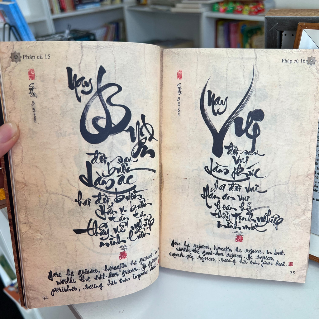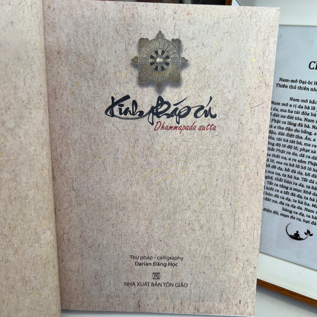 Quyển Kinh Pháp Cú mà Đăng Học thực hiện là dựa vào bản chuyển thể thơ kệ của thầy giáo Tịnh Minh (Đặng Ngọc,Chức). Toàn bô 26 phẩm ỵới 423 bài kệ tiếng Việt và đã chuyện ngữ sang tiếng Anh. Gần năm trăm trang sách được thể hiện trang trọng tỉ mỉ, những hình ảnh minh họa mang chiều sâu triết lý, với bìa sách được điêu khắc công phu miêu tả bốn giai đoạn cuộc đời Đức Phật. Mở từng trang sách ta sẽ thấy những lời vàng của Đức Phật được thể hiện bằng cả niềm tôn kính qua ngọn bút điêu luyện và công phu. Nhờ vậy nên từng con chữ trong 423 bài kệ bỗng dưng có sức sống, lay động tâm hồn ngươi xem.