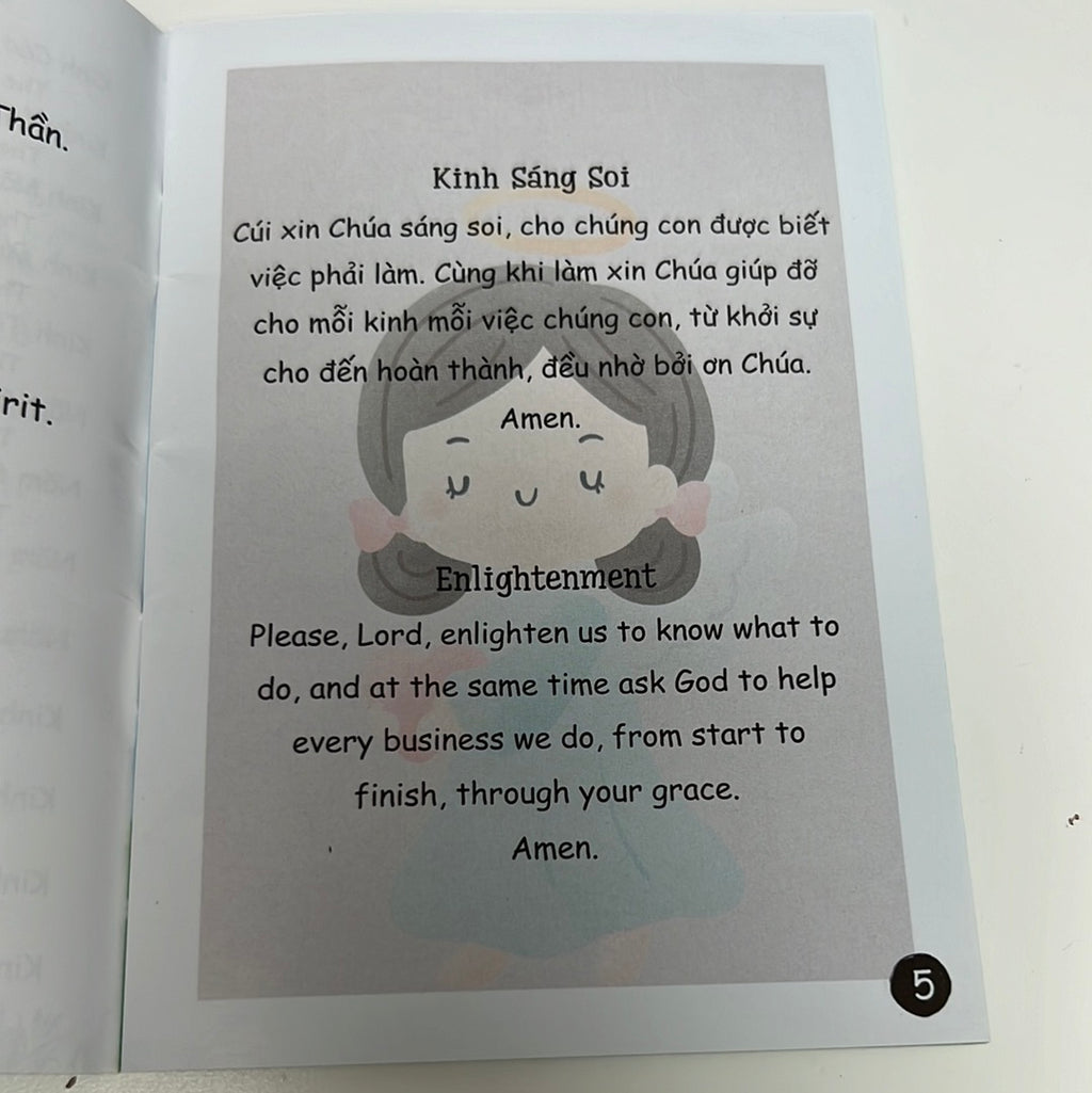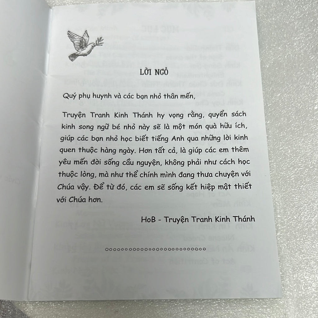 Đây là quyển sách kinh SONG NGỮ, bao gồm những lời kinh quen thuộc mà chúng ta đọc hàng ngày như: Kinh Lạy Cha, Kinh Kính Mừng, Sáng Danh, Kinh Chúa Thánh Thần, Kinh Tin Kính…