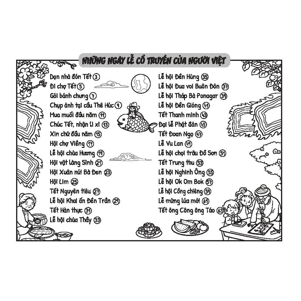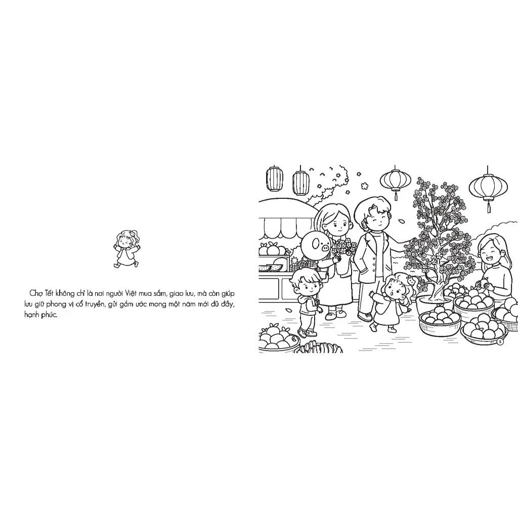 Cuốn sách không chỉ mang đến những hình ảnh sinh động về các lễ hội đặc sắc như múa lân, chợ Tết, mà còn giúp các bé vừa học, vừa chơi, thêm yêu nét đẹp truyền thống dân tộc.
