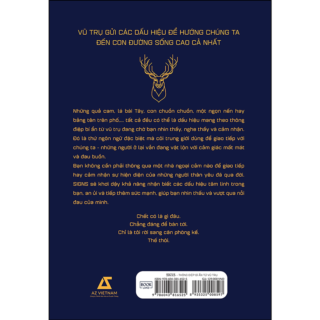 Nhưng có một sự thật đáng ngạc nhiên là, bạn không cần phải thông qua một nhà ngoại cảm để nhận ra những phước lành ấy và kích hoạt sức mạnh diệu kỳ đó, bởi tự bạn cũng có năng lực nhận biết và truy cập các dấu hiệu được cho là ngôn ngữ bí ẩn của vũ trụ - một dạng giao tiếp đã sẵn có ở khắp mọi nơi và dành cho tất cả mọi người. Đó chính là yêu tố cốt lõi mà SIGNS - Thông điệp bí ẩn từ vũ trụ muốn gửi gắm tới các bạn.