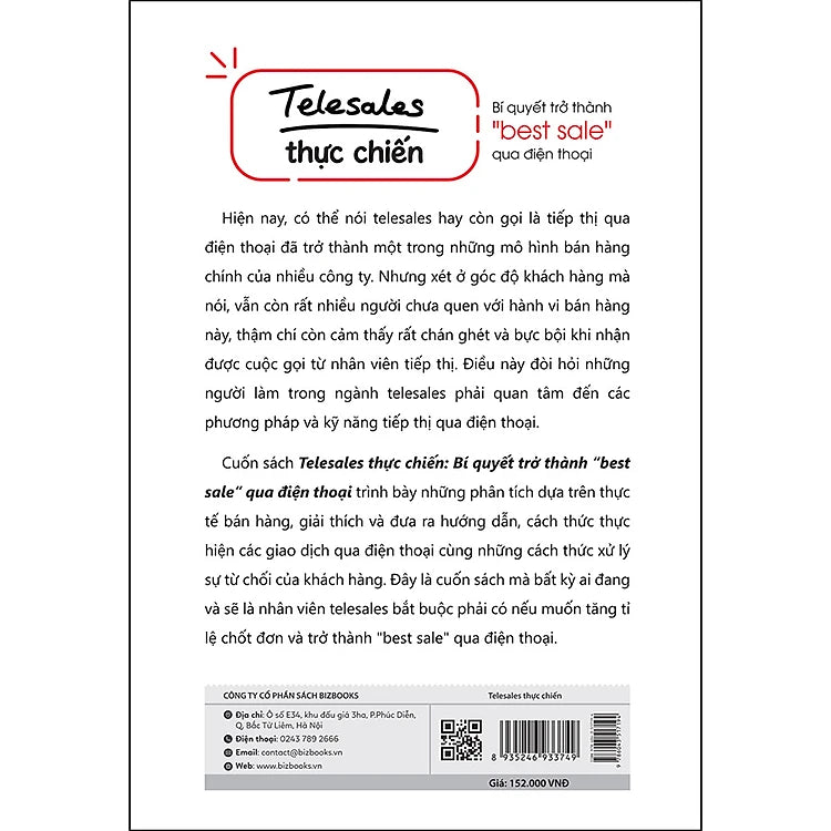 Từng dòng lật giở trang sách khiến bạn như được truyền cảm hứng về tình yêu nghề, sự kiên trì trên hành trình xây “từng viên gạch” của danh tiếng, hình ảnh thương hiệu tốt, giúp bạn chạm gần hơn tới trái tim khách hàng, nâng cao hiệu suất, thúc đẩy tăng trưởng doanh số cho công ty. Đặc biệt, cuốn sách “Telesales Thực chiến” còn hỗ trợ App nghe miễn phí và nhận ngay Audiobooks khi quét mã QR đằng sau sách!