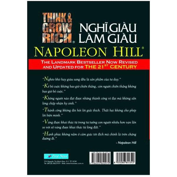 Think and Grow Rich - Nghĩ giàu và Làm giàu là cuốn sách đầu tiên đưa ra triết lý thành đạt - một triết lý đầy đủ và toàn diện về thành công của cá nhân, đồng thời cung cấp cho bạn phương pháp để tạo một ý thức thành công cũng như đưa ra kế hoạch sơ bộ và chi tiết để đạt được thành công đó.