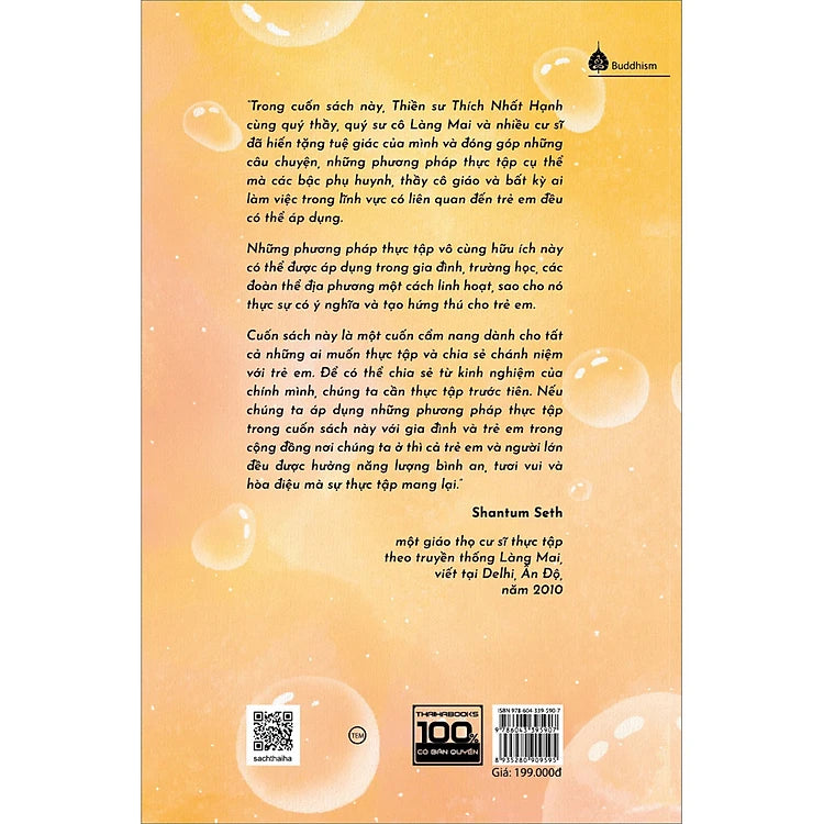 Trong cuốn sách này, Thiền sư Thích Nhất Hạnh cùng quý thầy, quý sư cô Làng Mai và nhiều cư sĩ đã hiến tặng tuệ giác của mình và đóng góp những câu chuyện, những phương pháp thực tập cụ thể mà các bậc phụ huynh, thầy cô giáo và bất kỳ ai làm việc trong lĩnh vực có liên quan đến trẻ em đều có thể áp dụng. Những phương pháp thực tập vô cùng hữu ích này có thể được áp dụng trong gia đình, trường học, các đoàn thể địa phương một cách linh hoạt, sao cho nó thực sự có ý nghĩa và tạo hứng thú cho trẻ em.