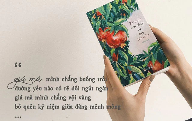 Đọc “Trái tim còn cháy và tay còn cầm” như đang nằm nép mình trong một căn phòng êm ái. Nơi ta được thả trôi cảm xúc bên trong. Được bật khóc, được mỉm cười, được cho nỗi nhớ tràn ra và chạm vào bóng dáng mỗi đêm ta nhớ mong.
