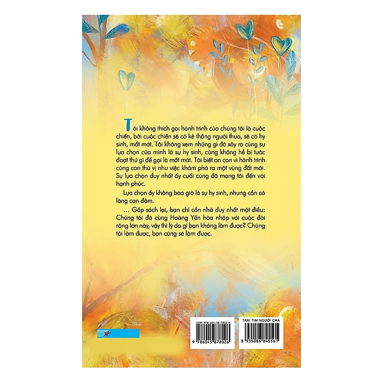 Là cuốn sách thứ hai viết về đề tài tự kỷ của nhà văn Nguyễn Thị Việt Hà, “Trái tim người cha” được kể bằng giọng văn đầy xúc cảm. Tám năm cho một hành trình đòi hỏi nhiều kiên nhẫn và yêu thương được chị khắc họa trung thực, cảm động và đầy thấu hiểu! Cuối cùng thì đi qua giông tố, qua hết mọi bi quan, sợ hãi, hạt giống gieo trồng trên sa mạc đã nảy mầm. Và cái ngày sa mạc nở hoa thật sự chẳng còn xa… Bởi vì với trái tim người cha, không gì là không thể!