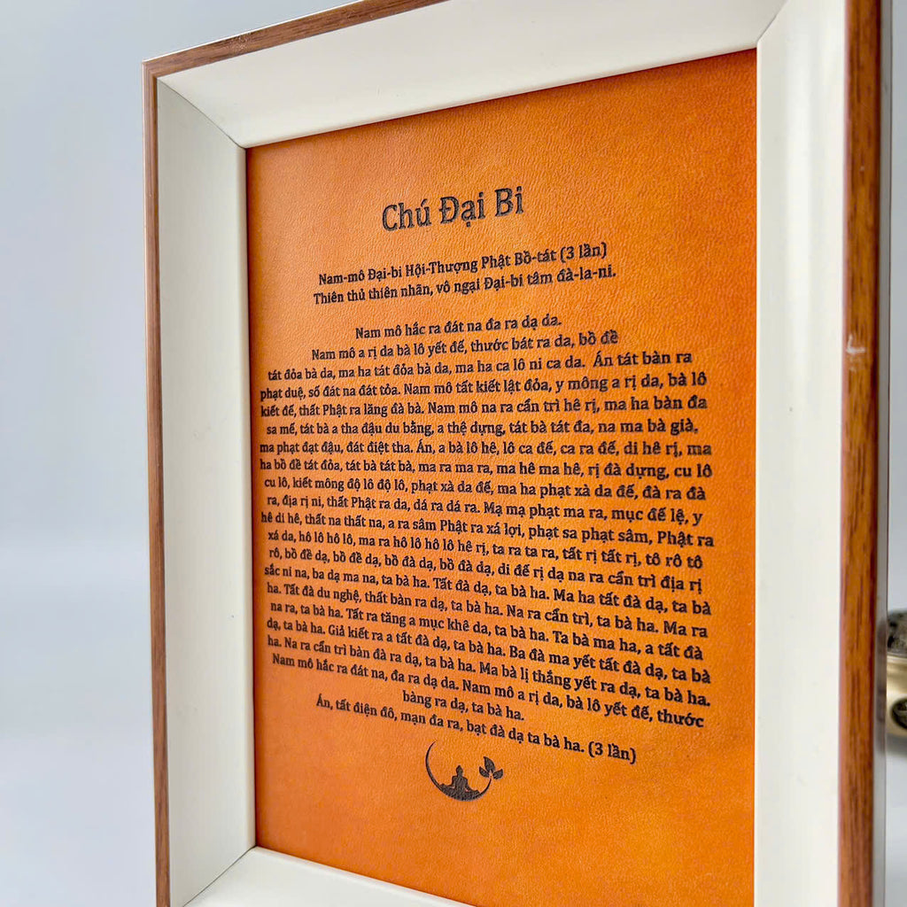 Bức tranh da Phật giáo khắc Chú Đại Bi tinh xảo, mang lại bình an, may mắn và năng lượng thanh tịnh cho không gian sống của bạn.