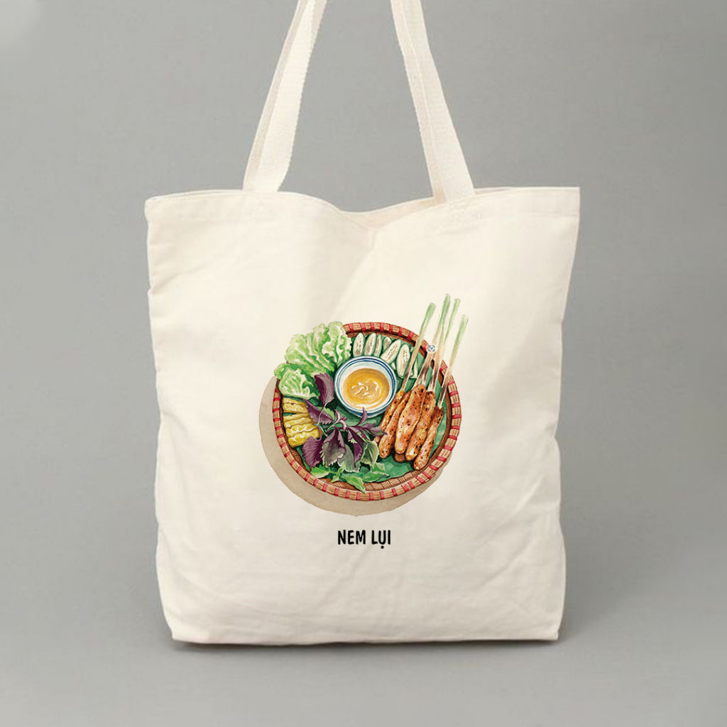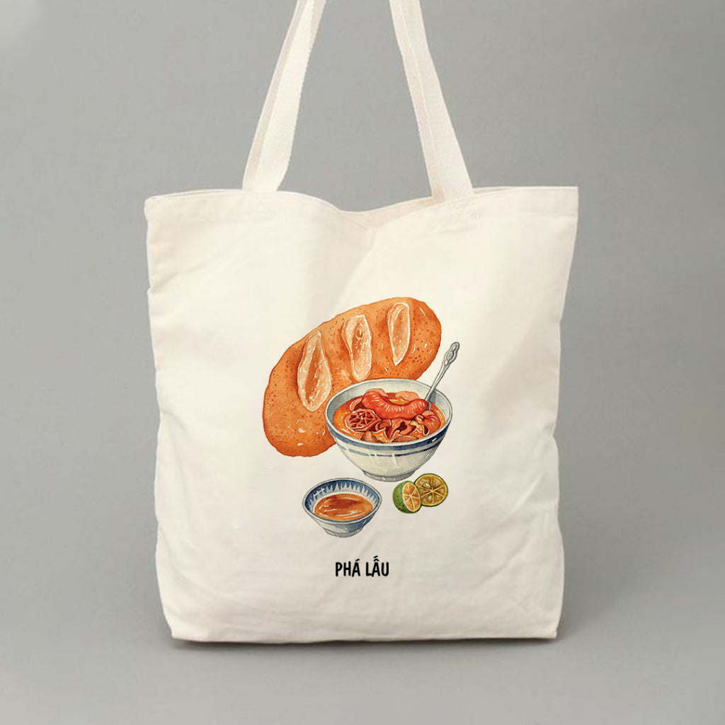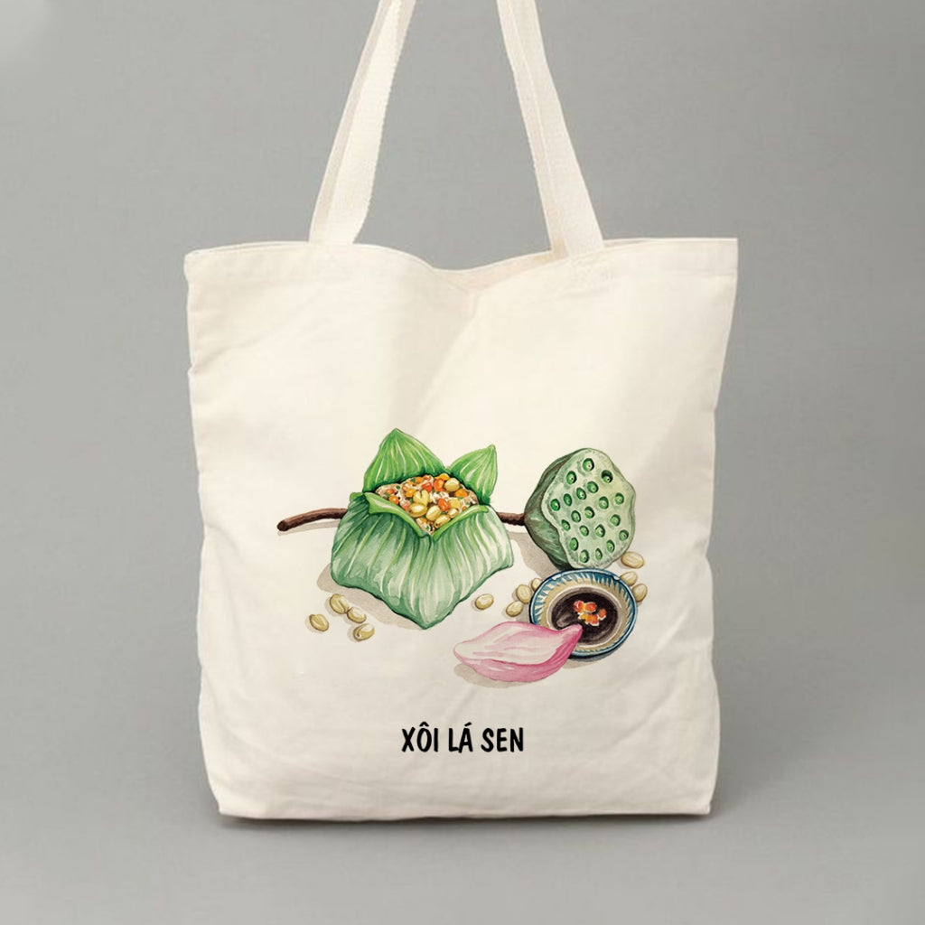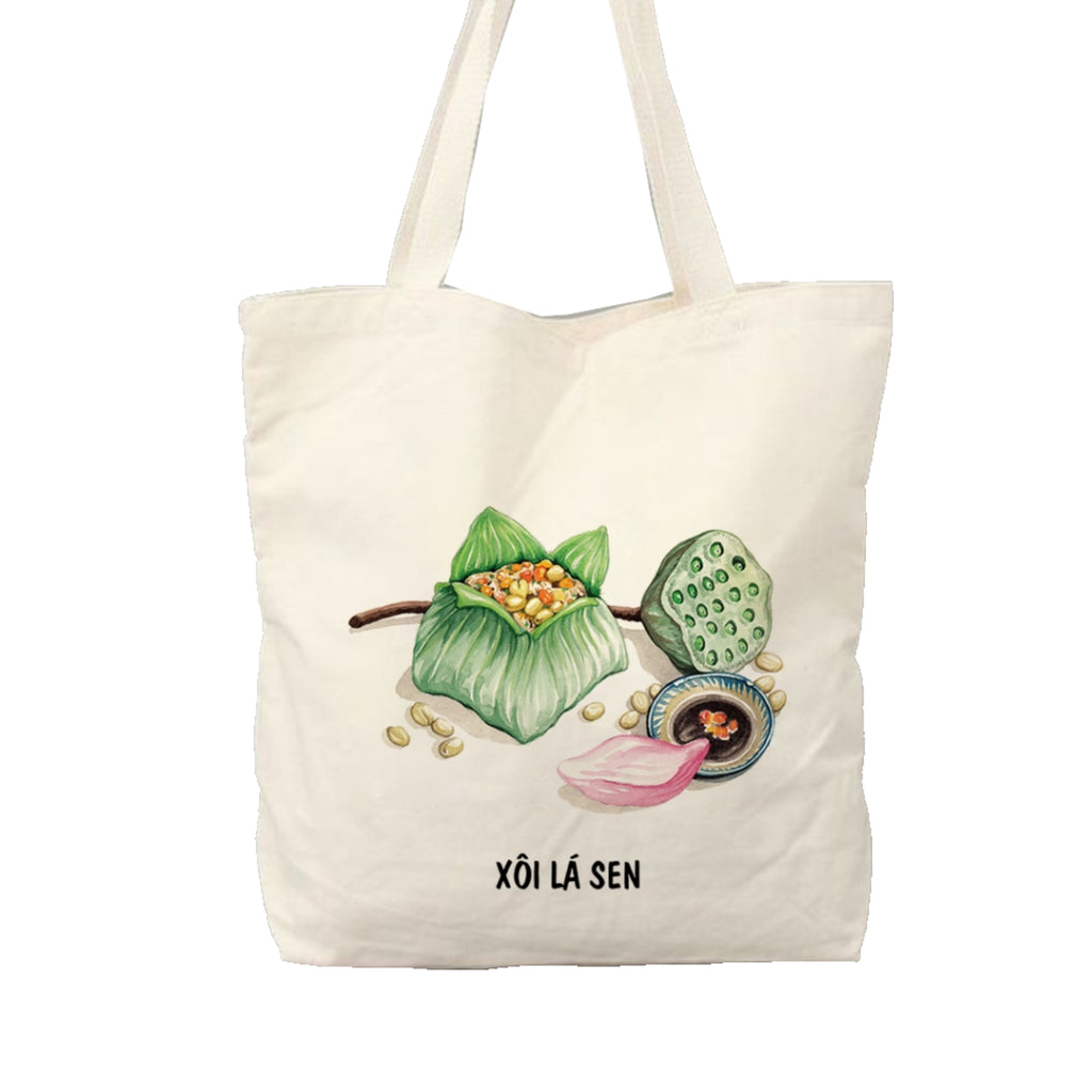 Túi tote vải canvas ẩm thực Việt Nam tiện dụng ($13)