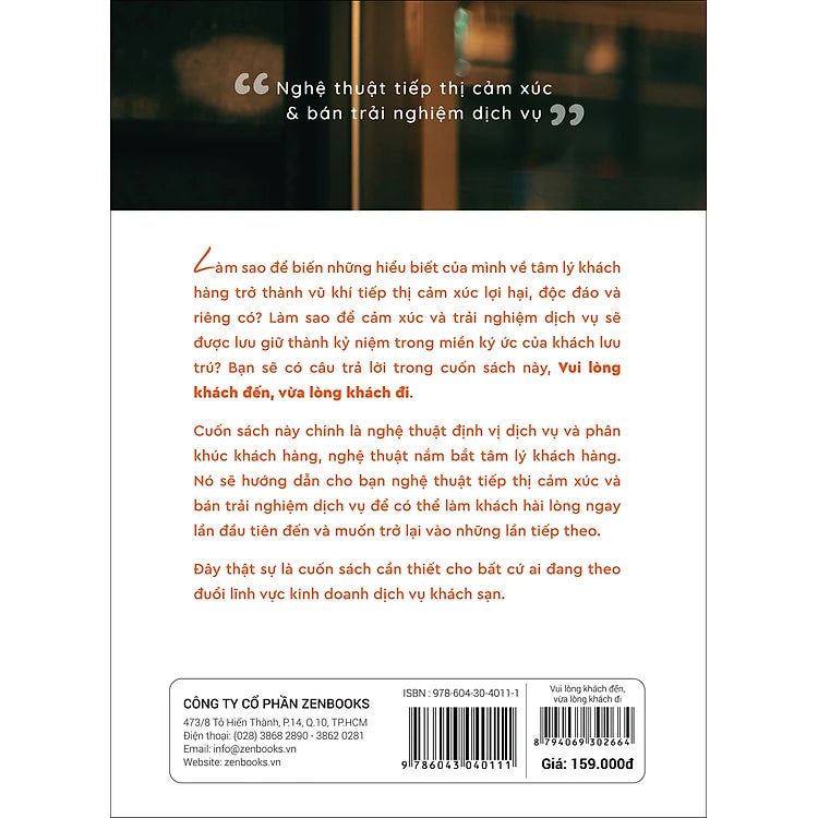 “Vui lòng khách đến, vừa lòng khách đi” là câu nói cửa miệng của những người làm dịch vụ, triết lý dịch vụ của người Việt và cũng chính là tựa đề của cuốn sách “Vui lòng khách đến, vừa lòng khách đi”, nghệ thuật tiếp thị cảm xúc và bán trải nghiệm dịch vụ. Nghệ thuật tiếp thị cảm xúc là nghệ thuật đánh thức cảm xúc, thu hút chú ý và kích thích nhu cầu trải nghiệm bằng cách đặt khách lưu trú vào không gian trải nghiệm. Khi cảm xúc được chạm tới thì khao khát được là chính mình trong không gian trải nghiệm sẽ xóa nhòa những lo ngại về giá phòng hay đường xa. Khi cảm xúc được đẩy lên cao thì khát khao dành những trải nghiệm đáng nhớ cho gia đình và người thân, những điều sau này sẽ thành kí ức đẹp sẽ xua đi những lý do trì hoãn. Khi cảm xúc được thăng hoa thì khách hàng sẽ tin tưởng và vui vẻ đến với chúng ta. Nghệ thuật bán trải nghiệm dịch vụ là nghệ thuật làm vừa lòng khách hàng khi họ sử dụng dịch vụ và khiến họ hài lòng với những điều mà chúng ta đã thu hút và kéo họ tới. Vì thế, tiếp thị làm cho khách vui mà đến với dịch vụ của chúng ta và những trải nghiệm mang đến cho khách hàng khi sử dụng dịch vụ khiến họ vui lòng lúc rời đi.